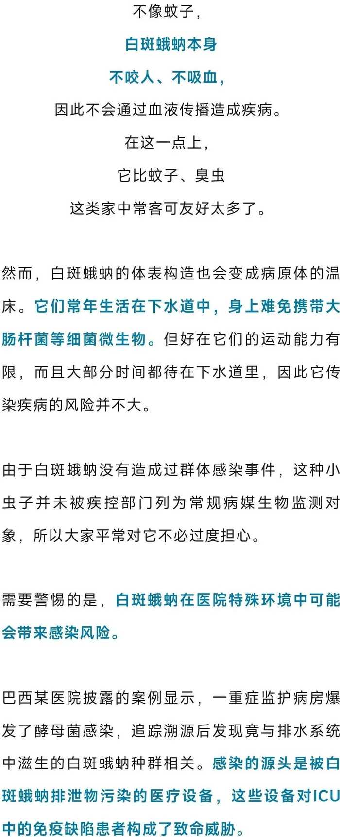 这样看来,偶尔从下水管道飞出来的白斑蛾蚋,除了招人烦,没啥实质性的大危害。