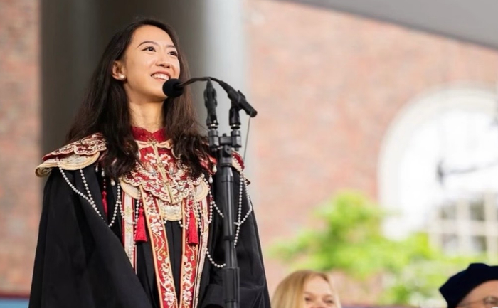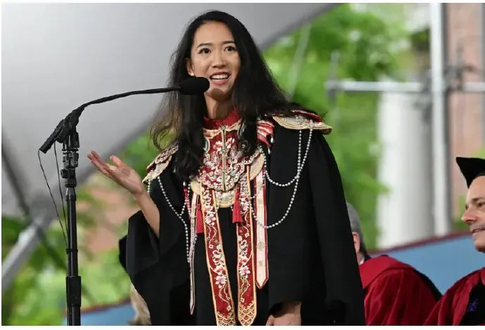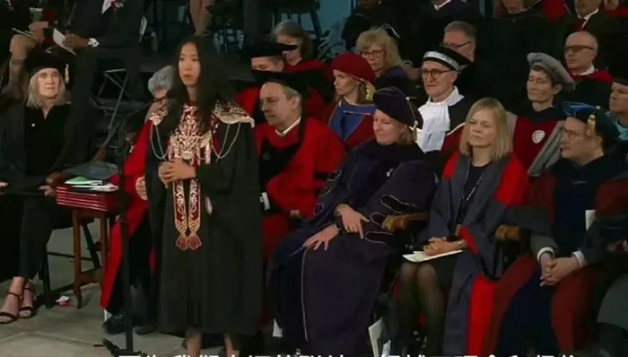 5月29日,在哈佛大学毕业典礼上,蒋雨融穿着中国传统服饰,通过讲述翻译洗衣机中文标识的趣事,呼吁多元与包容,并间接批评了特朗普政府的“禁招令”,演讲视频引发广泛关注。这场本应充满励志色彩的演讲却因后续的舆论争议迅速发酵,其“寒门逆袭”人设随后遭遇舆论反转。
