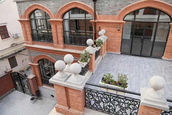 三幢别墅中,西楼与中楼通过天桥相连,作为企业办公空间;东楼过街楼下的次入口则保留历史原貌,现代商务氛围中透出古典韵味。