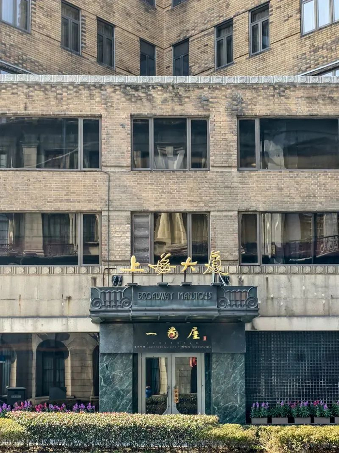 上海大厦,原称百老汇大厦,东临东大名路,南接苏州河与黄浦江交汇处的外白渡桥。1934年竣工,由公和洋行设计,新仁记营造厂和久记营造厂等6家营造厂承包。采用近代摩天大楼形式,是上海外滩建筑群中早期的高层建筑之一。1951年5月1日,由上海市人民政府正式更名为“上海大厦”。大厦的设计受西方现代主义建筑思潮的影响,外观简洁气势雄伟,从十一层起逐层收进,巧妙解决房间的朝向和采光,大厦外墙底层为暗红色花岗石,二层及以上为褐色泰山面砖。
