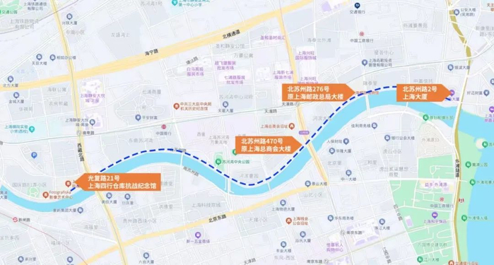 本期“骑行苏河”系列将打卡专项规划中的都市经典段(河口-昌平路桥),伴着五月的和风,预计骑行约2.1公里,先后打卡:上海大厦 —— 原上海邮政总局大楼 —— 原上海总商会大楼 —— 上海四行仓库抗战纪念馆。