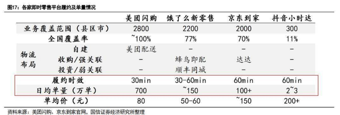 在履约能力方面,三大平台还要开打新一轮硬仗。近年,美团正在不断加大闪电仓的布局,预计到2027年将要建超过10万个闪电仓,也是三家平台中拥有最多前置仓的平台。