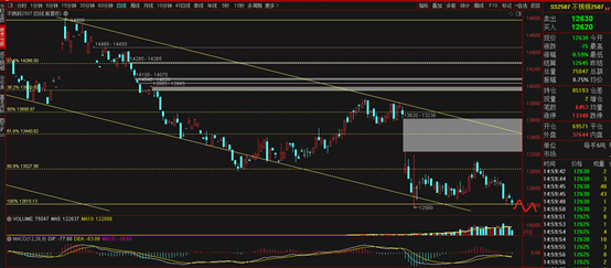 3日早盘小幅低开,全天实时走势围绕分时均线震荡拉锯运行直至收盘,K线收小阴线,不改空头趋势,短期大概率呈现出横盘震荡或有下跌的走势,下一个交易日2507合约预计在12700—12550之间运行。