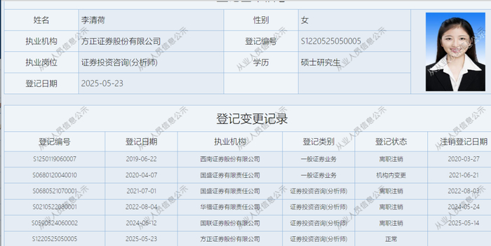 有意思的是,就在几天前,也就是5月23日,原国联证券固收首席李清荷也携团队跳槽至方正证券,继续担任固收首席。这就意味着,随着国联民生合并,该研究所目前处于0固收首席状态。