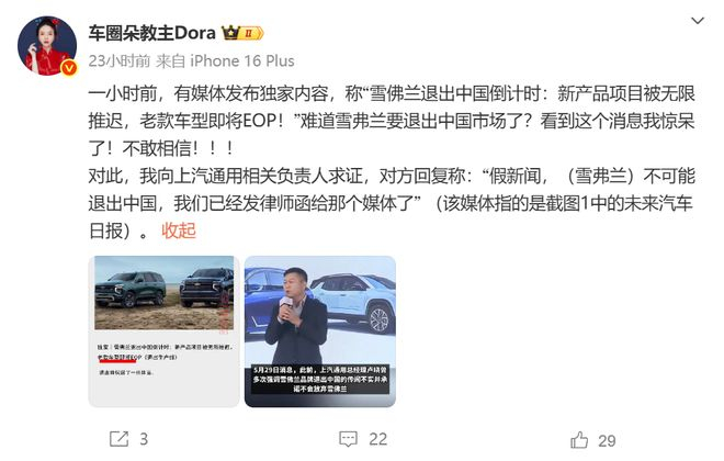 而这次报道出现,有媒体向上汽通用求证后辟谣,也说雪佛兰将退出中国是 “ 假新闻 ” 。