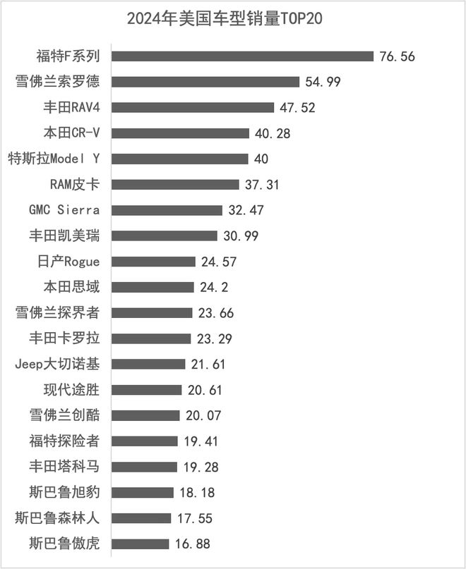 这和长期以来美国的路况和油价相关,但在如今马路堵塞、油价高涨的时代,这条路已经不太走得通了。就算是在美国,家用车型还是以丰田 RAV4 和本田 CR-V 的日系车为主。