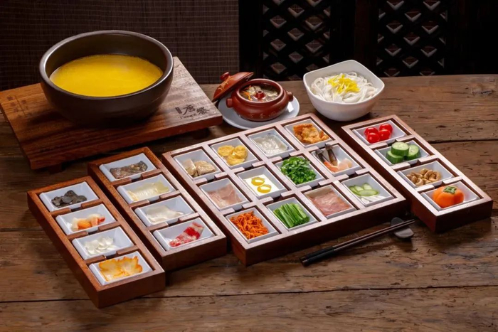 肥牛(1份)|乌鸡卷(1份)|海螺片(1份)|金耳(1份)|里脊肉(1份)|香酥(1份)|去骨鸡肉(1份)|跳水虾(2份)|诺邓火腿(1份)|芦笋(1份)|草芽(1份)|虫草花(1份)|韭菜(1份)|豆腐皮(1份)|葱花(1份)|香菜(1份)|墨鱼片(1份)|鹌鹑蛋(2份)|玉兰片(1份)|特色四味碟(1份)