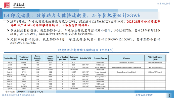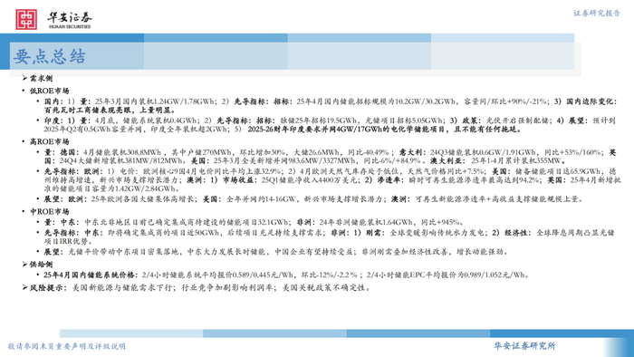 本报告摘自华安证券2025年5月19日已发布的《【华安证券·电力设备】行业专题:国内大储招标高增,英国大储招标超预期》,具体分析内容请详见报告。若因对报告的摘编等产生歧义,应以报告发布当日的完整内容为准。