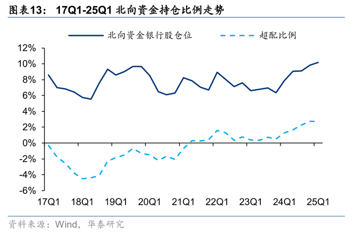 中国资产重估与全球资金再配置背景下,外资逐步回归,增量资金有望流入银行板块。当前,中国经济修复预期逐步改善,内需不足问题边际缓解,房地产市场跌幅收窄,产能出清已进入“冲刺期”,叠加近期多项稳增长政策落地,有助于提振市场信心和企业盈利能力。核心物价下行压力有所缓和,美元资产避险属性减弱,进一步强化了人民币升值预期。中国经济修复预期为吸引全球资本回流创造了条件,人民币或有升值动力,有望催化中国资产重估空间。近期外资唱多中国资产,随中国资产在全球资金配置中的吸引力上升,外资有望逐步回归。银行板块占基准指数的权重高,且基本面稳健,有望成为外资回流的核心受益方向。