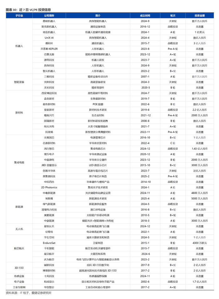 根据IT桔子数据,本周(05/24-05/30)共有49项先进制造相关VC/PE投资信息。1)以产业分类,集成电路10项,机器人10项,新材料8项,其他产业21项;2)以投资轮次分类,天使轮10项,A轮9项,战略融资8项,其他轮次22项。