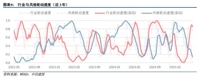 下图来自中信建投 2025 年 5 月 4 日的《量化周报》,可以看到行业轮动时而迅速,时而缓慢,与风格轮动时而同步,时而异步。