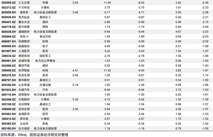 冲击系数小于-1.5的股票如下,其中东方雨虹、华兰生物、中国中铁等股票预计冲击较大,冲击系数分别为-7.12、-6.79、-5.53。
