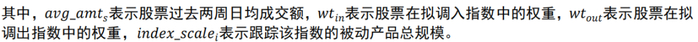3.此外由于同一股票在不同指数中调入、调出方向可能不同,我们分别计算个股在不同指数的调入调出规模并汇总得到个股的净调整规模,并定义冲击系数为净调整规模除以股票过去两周日均成交额,用以衡量个股可能受到的资金冲击。冲击系数的具体公式如下: