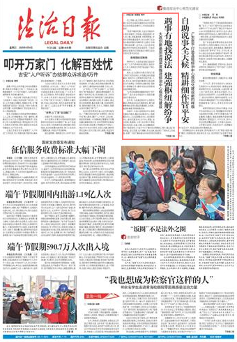 “小事不出村、大事不出镇、矛盾不上交”,是新时代“枫桥经验”的重要内容。