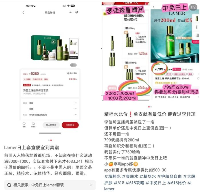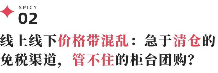 以海蓝之谜为例,去年618和双11大促期间,一度出现中免日上、海口免税渠道的同款产品比官方旗舰店乃至李佳琦直播间最低折扣还要优惠数百元的情况,线上线下的价格体系十分混乱,极大影响其高端美妆形象树立。