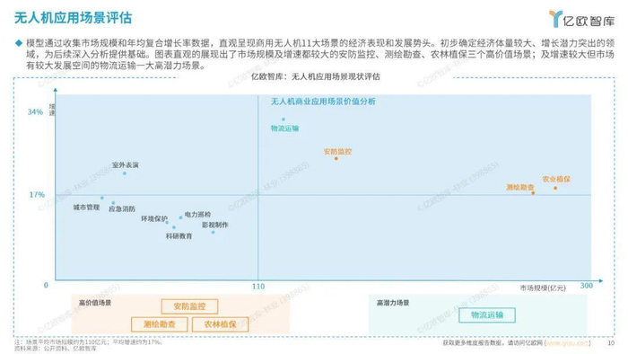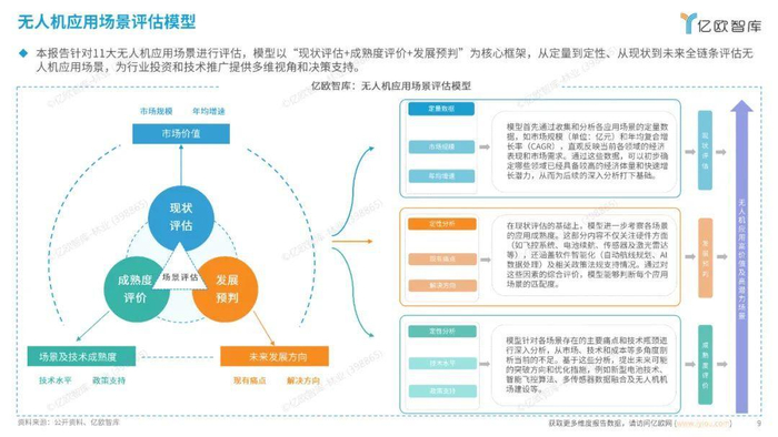 报告还详细绘制了低空经济无人机的产业链图谱,从上游的电源、电机系统,到中游的飞控提供商、主机厂,再到下游的通航公司和运营公司,全面展现了产业生态。应用场景方面,报告构建了评估模型,综合考量市场规模、增速、技术成熟度和政策支持等因素,对各应用场景进行价值评估。