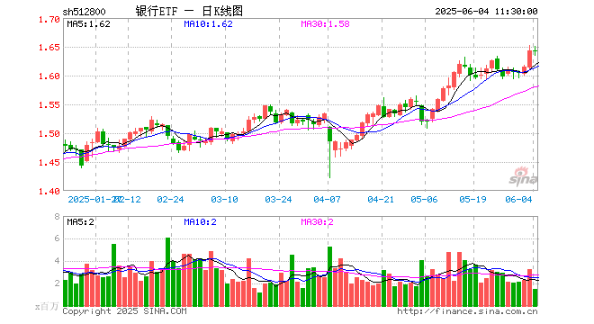银行ETF(512800)涨0.00%,半日成交额2.49亿元
