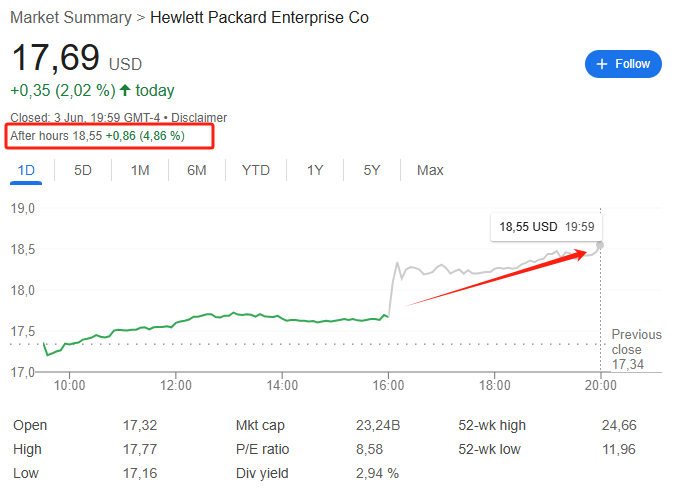 慧与科技AI服务器需求强劲,第二财季业绩超预期,股价在周二盘后交易中上涨约5%。