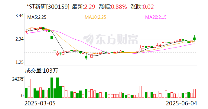 6月3日晚间,*ST新研(300159)公告,中国信达资产管理股份有限公司四川省分公司以公司不能清偿到期债务且资产不足以清偿全部债务,但具有重整价值为由,于2025年5月30日向乌鲁木齐市中级人民法院申请对公司进行重整,并申请启动预重整程序。