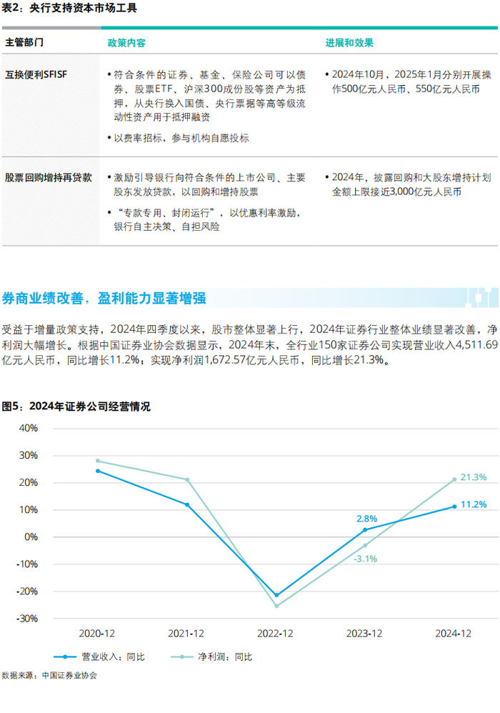 受益于增量政策支持,2024年四季度以来,股市整体显著上行,2024年证券行业整体业绩显著改善,净利润大幅增长。根据中国证券业协会数据显示,2024年末,全行业150家证券公司实现营业收入4,511.69亿元人民币,同比增长11.2%;实现净利润1,672.57亿元人民币,同比增长21.3%。