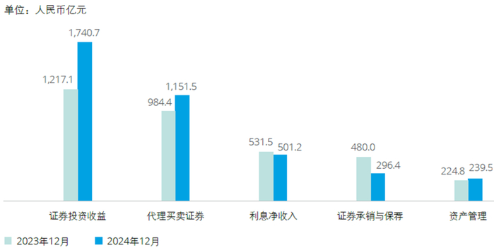 图:2024年证券业主营业务收入结构和增长情况