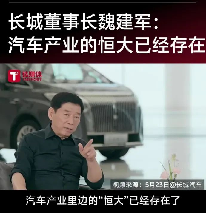 长城董事长魏建军在采访中一句“汽车行业的恒大已存在”,再度引爆争议。