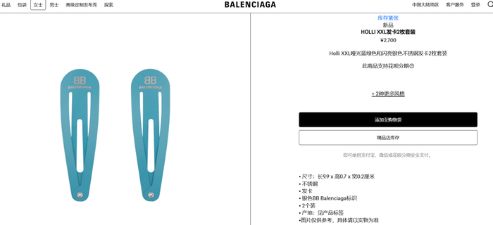 此前,巴黎世家还因推出一款2700元的发卡引发热议。