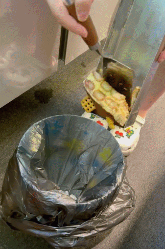 而是会祭出很多网红面包店会用的纸浆盒和保温外卖袋,蛋糕上还会点缀几支除了好看没啥用处的花花草草。