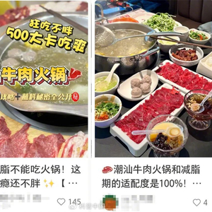 但在某社交平台上,潮汕牛肉火锅却在减肥圈子里很受欢迎,搜索相关文字就能看到很多类似这样的推荐:“减肥都去吃潮汕牛肉火锅”“潮汕牛肉火锅和减脂期的适配度是 100%”……