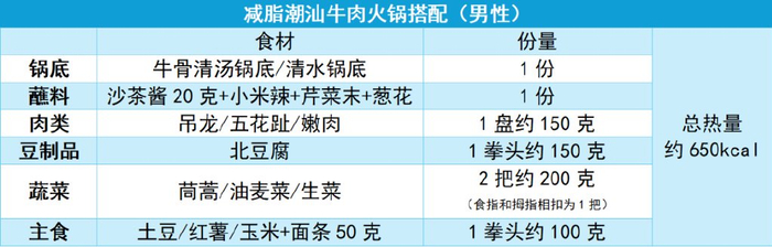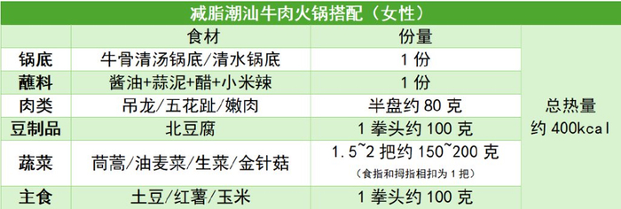 正确的搭配和进食量是“越吃越瘦”的前提,下面是潮汕牛肉火锅低卡减脂单人餐搭配示例,总热量约 400~700kcal,适合作为一顿减脂期的正餐。
