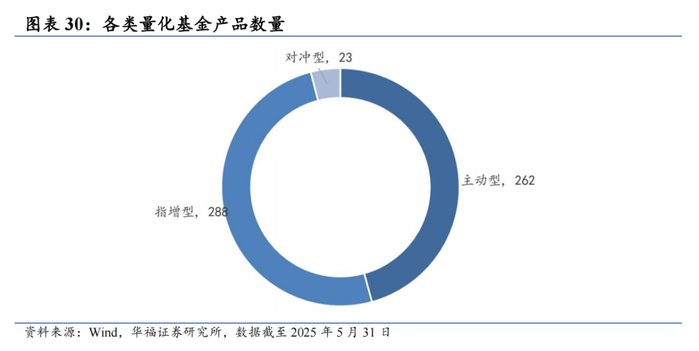 截至2025年5月31日,全市场量化基金总数为573只,其中指增基金288只,是我国目前市场上数量最多的量化基金产品,数量占比50.26%。