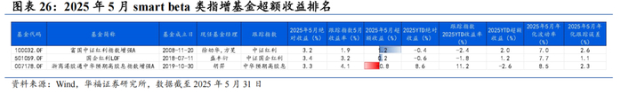 2025年5月,跟踪中证红利指数的量化基金月度超额收益率排名第一,将收益表现概况及绩效指标展示如下表所示: