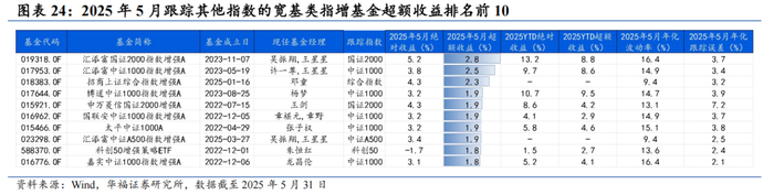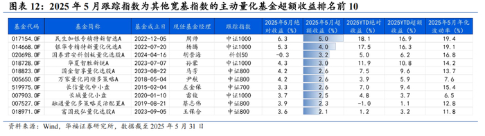 列举出2025年5月超额收益排名前10的跟踪其他宽基类的指增基金,其中排名前3的量化基金跟踪国证2000、中证1000、综合指数。
