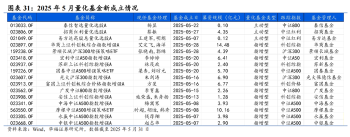 2025年5月新成立16只量化基金(计数时只考虑主基金,规模按合计规模计算),其中13只为指数增强基金。量化基金整体较上月新成立量化基金数量减少2只,合计基金募资规模为76.15亿元。