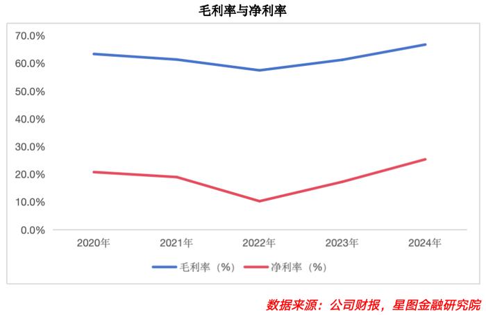 正是由于公司出色的战略决策,除2022年受公共卫生事件影响,其余年度业绩均呈快速增长态势。2024年,更是受益于爆款IP运营成功、产品结构改善与全球化路径打通,业绩迎来爆发式增长,营收、净利润分别达130.4亿元与31.3亿元,同比增长107.0%与189.8%。