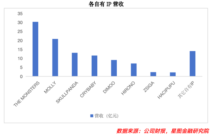 泡泡玛特凭借全球范围内发掘潮流艺术家与设计师的能力,通过签约、收购、孵化、联名等方式,构建了多元化IP库,自有IP数量不断增加,并结合公司成熟的IP运营体系,成功打造多个热门IP形象,如今已构建自有IP壁垒。