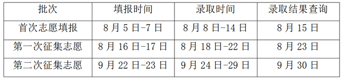 第二次征集志愿填报:9月22日9:00-23日17:00