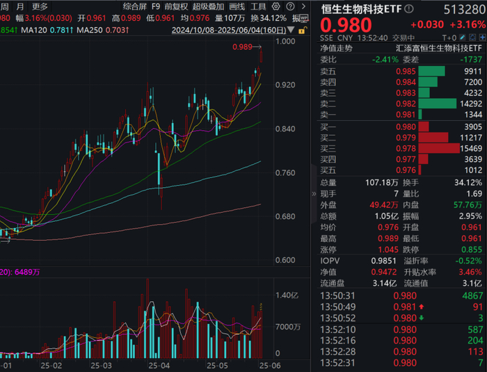 【港股创新药更低费率之选——恒生生物科技ETF(513280)】