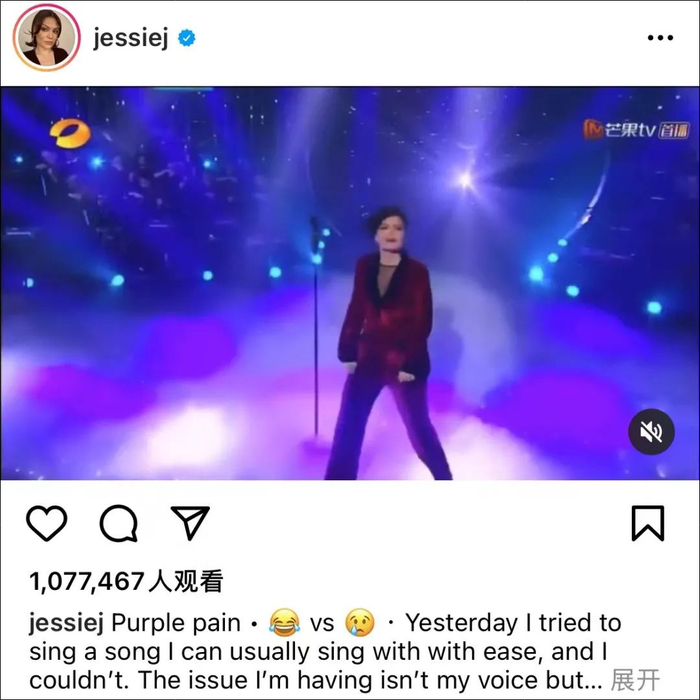 结石姐曾在ins上分享了一段在中国参加节目时演唱的视频,然而配文却是满满的悲伤:昨晚我试着唱一首我以前可以轻松驾驭的歌,但我唱不了了。