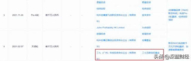 据天眼查显示,早在2021年2月,三七互娱就参与了影目科技的天使轮,目前,三七互娱持有其2.5%的股份。去年7月,影目科技最新一轮融资完成时,估值已经达到约15亿。