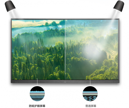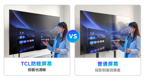 从显示清晰度来看,普通电视虽然画质不错,但大多是为观影场景优化,强光下容易反光。投影仪更是“见不得光”,白天开会要拉窗帘,后排同时看PPT全靠想象力。而专业会议电视采用的防眩光屏幕,强光下依然清晰展示画面内容,TCL会议电视拥有AG防眩光屏幕,侧面也能清楚看到屏幕。因此,会议电视在显示清晰度方面完胜其他显示设备。