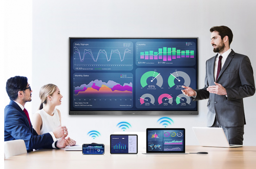 从投屏效率来看,常用的普通电视、投影仪和会议电视区别很大。普通电视要先找转接头,再调分辨率,还容易出现不兼容情况,特别是多终端切换时需重新配对,会议准备时间较长。而投影仪更麻烦,每次开会前都要调试半天不说,显示效果又不好,会议途中要切换演示设备时又是一项“大工程”,既费时又费力。而TCL会议电视支持手机、电脑、平板等设备的一键无线投屏,小白也能直接上手。