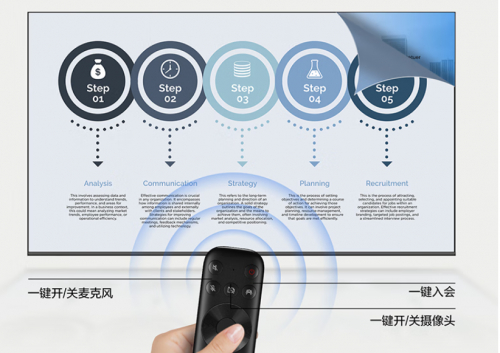 除此之外,其他参数也需要注意,才能带来更好的会议体验,TCL会议电视的“杀手锏”还在于那些不起眼却实用性极强的小设计:AI降噪搭配远场拾音,能精准捕捉发言并自动过滤环境杂音;多功能遥控器一键唤醒会议模式,遥控、翻页、开关摄像头等尽在掌握……这些藏在细节里的设计,就像给会议装了隐形加速器,让效率直接翻倍。