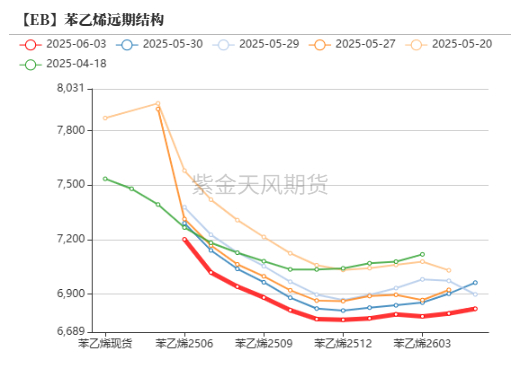 苯乙烯远期维持Back结构,当前现货端偏紧,后续有累库预期,后续关注需求持续性情况。