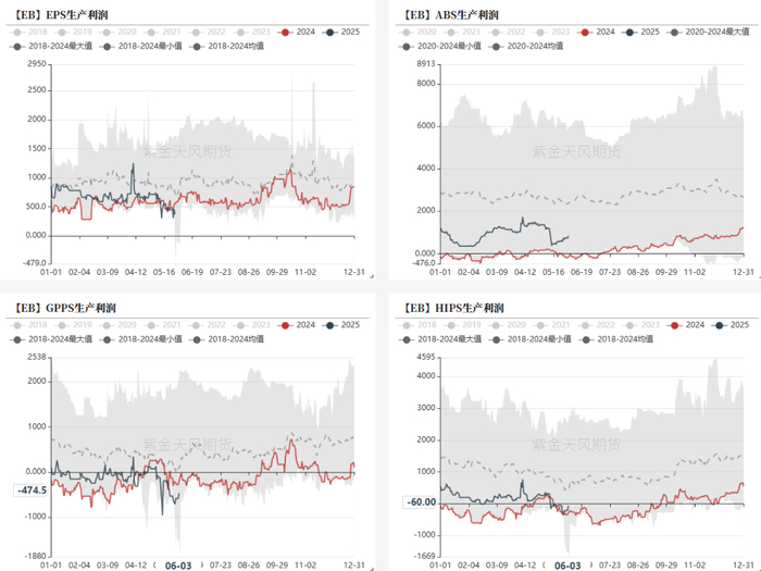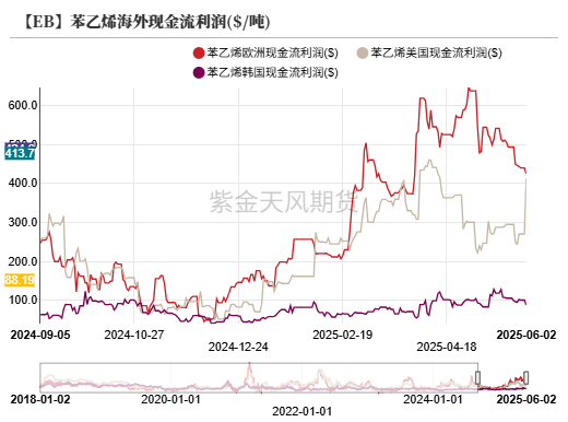 苯乙烯远近期利润出现分化,近端利润较好,但远期利润开始走弱幅度较大,反映了市场对远月的预期较为悲观。