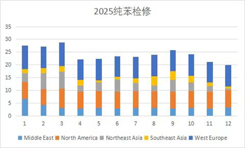 亚洲地区,美亚套利窗口关闭导致韩国对美无出口,同时预计欧洲纯苯进口增加,整体供需偏弱,市场对需求复苏信心不足。