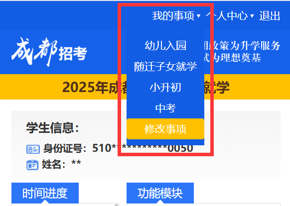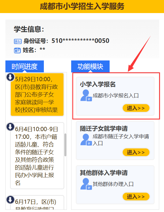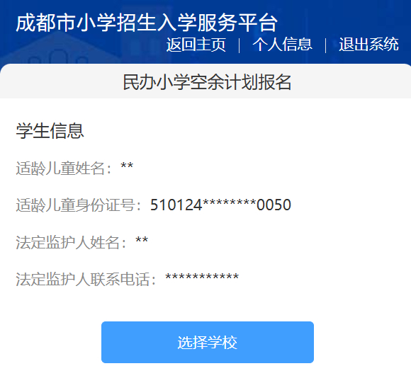 在成都市义务教育招生入学服务平台上
