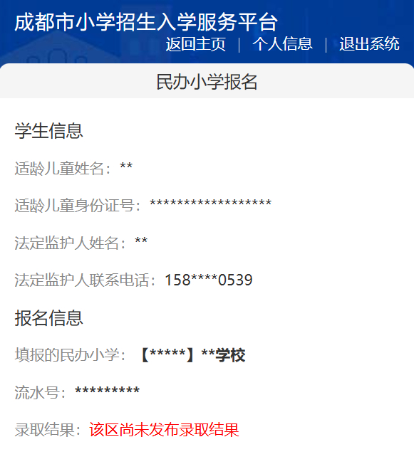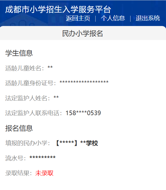 查看民办小学录取结果