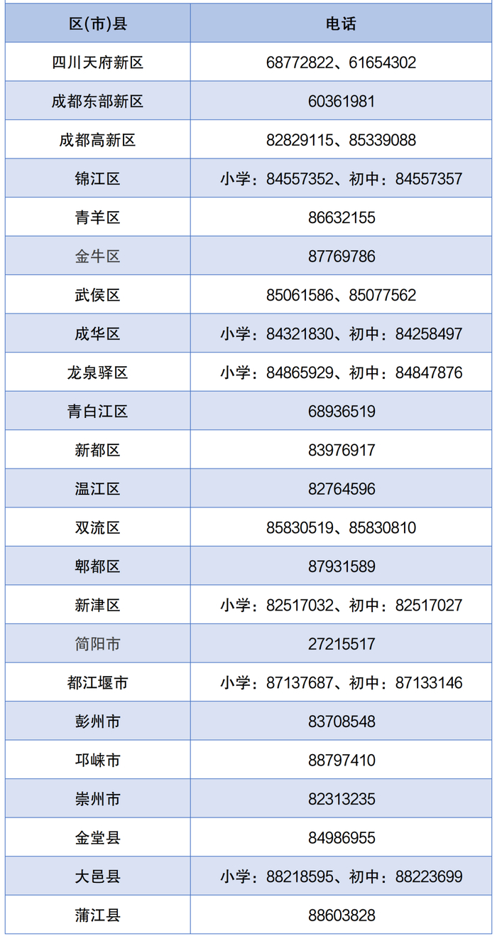 请电话联系各区(市)县教育行政部门