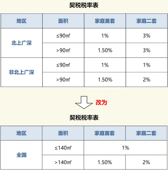 也就是说,契税税率修改如下: